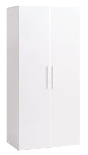 En panneau de particules mélaminé, finition brillante. Intérieur : 1 tringle à vêtements, 2 étagères. 2 portes soft-close. l97 x H208 x P62 cm