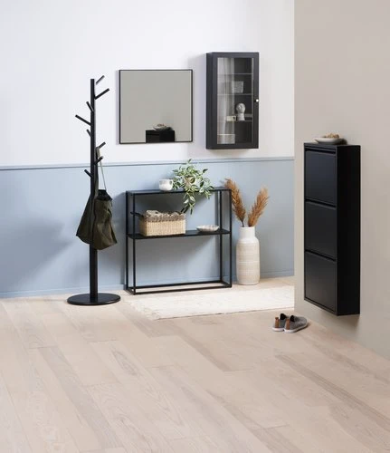 En MDF, acier et verre trempé. l40 x H80 x P15 cm