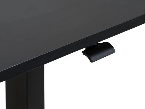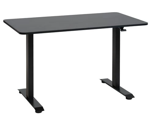 Plateau : panneau de particules mélaminé. Côtés : plastique ABS. Pieds : polypropylène, acier. Bureau ajustable en hauteur grâce à un vérin à gaz (sans fil). l70 x L130 x H75-117 cm