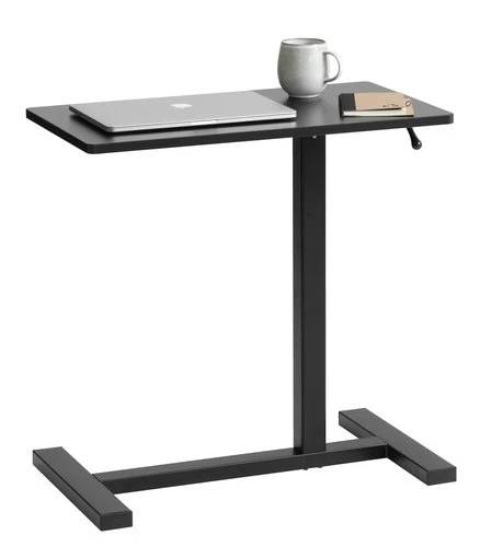 En panneau de particules mélaminé et plastique ABS. Pieds : aluminium, acier, plastique ABS. Bureau réglable en hauteur, sans fil (vérin à gaz). Avec roulettes. l41 x L70 x H72-106 cm
