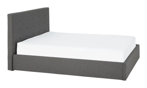 Cadre : acier, MDF, lamibois. Rembourrage : mousse PU (22 kg/mÂł). RevĂŞtement : 100% polyester (290 g/m²). Pieds : polypropylène. Avec coffre de rangement. Couchage : 140×200 cm. Inclus sommier Ă lattes. Exclu matelas. l159 x L217 x H112 cm