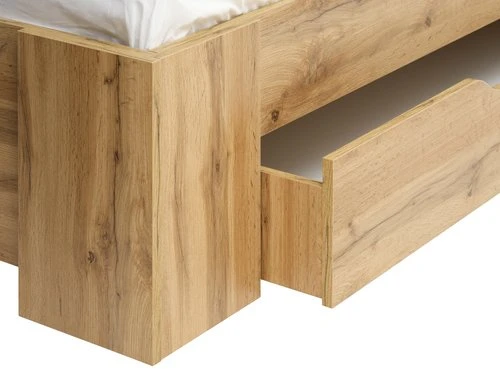 Structure : HDF, panneau de particules mélaminé. Barre centrale : épicea massif. Excl. sommier et matelas. Avec espace de rangement. Couchage : 140×200 cm, l149 x L207 x H90 cm