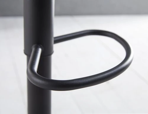 Cadre : contreplaqué. Garnissage : mousse polyuréthane (24/25 kg/m³). Revêtement : polyuréthane. Piètement : acier, finition époxy. Hauteur ajustable. l48 x L45 x H89-111 x P48 cm