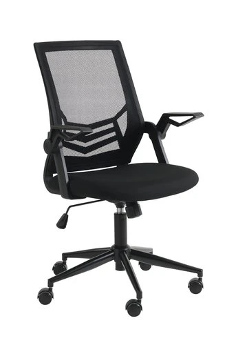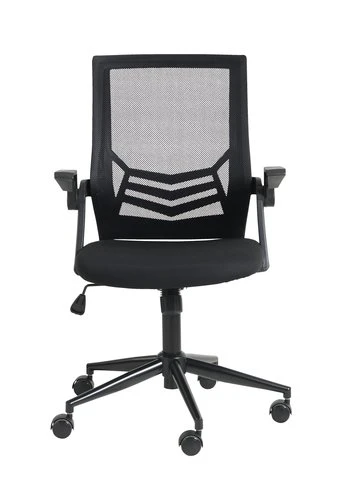 Coque : contreplaqué, polypropylène. Garnissage : mousse polyuréthane (25 kg/m³). Revêtement : polyester. Piètement : acier. Soutien lombaire, accoudoirs rabattables, hauteur ajustable et mécanisme d’inclinaison. l59 x H95-107 x P61 cm