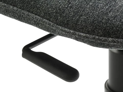 Structure : contreplaqué, acier. Garnissage : mousse polyuréthane. Revêtement : polyester. Pieds : nylon, polypropylène et acier. Hauteur ajustable et mécanisme d’inclinaison en continu. l52 x H85-95 x P64 cm