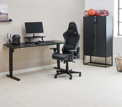 Structure : contreplaqué, acier. Garnissage : polyuréthane. Revêtement : polyester, coton, polyuréthane. Pieds : polyamide. Accoudoirs, dossier et hauteur ajustables, support lombaire, mécanisme d’inclinaison en continu. l70 x H126-136 x P70 cm