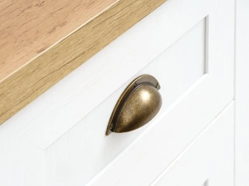 Face avant, face avant tiroir : MDF et panneau de particules, mélaminé. Partie supérieure et inférieure, côtés, étagères : panneau de particules mélaminé. 4 tiroirs, 1 porte. l92 x H88 x P43 cm