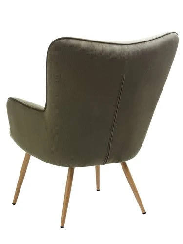 Structure : contreplaqué feuille. Garnissage : mousse polyuréthane (24/28-50 kg/m³). Revêtement : polyester. Piètement : acier. l72 x H98 x P80 cm