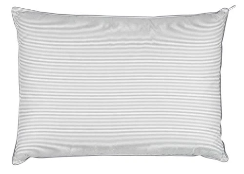 Oreiller de qualité avec 3 compartiments. Garnissage : cloisons externes: 50% duvet de canard gris/50% plumes de canard gris. Cloisons internes: 100% plumes de canard gris. Enveloppe : coton. Pouvoir gonflant : 350. Lavable à 60°C délicat. 50×70 cm, 750g