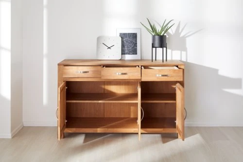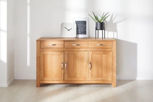 Chêne massif et placage chêne. l140 x H86 x P45 cm