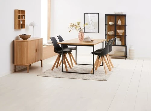 | Pieds | Placage chêneLe placage de chêne est constitué de fines couches de bois massif collées sur un panneau de particules ou un panneau MDF. Il offre l'aspect authentique du bois naturel massif., Chêne massif |