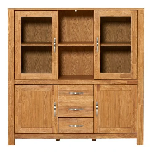 Chêne massif, placage chêne et verre trempé. l135 x H137 x P45 cm