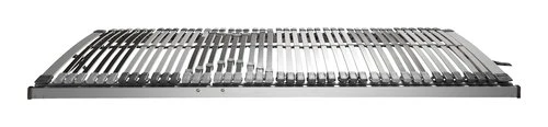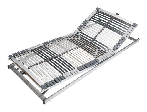 Sommier réglable manuellement. 41 lattes en contreplaqué bouleau dont 9 lattes doubles à fermeté réglable. Traverses en contreplaqué hêtre. 7 zones de confort. Pour matelas 140×190 cm, l139 x L186,5 x H8,5 cm